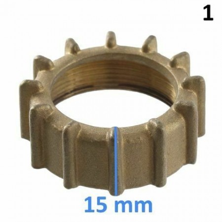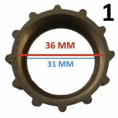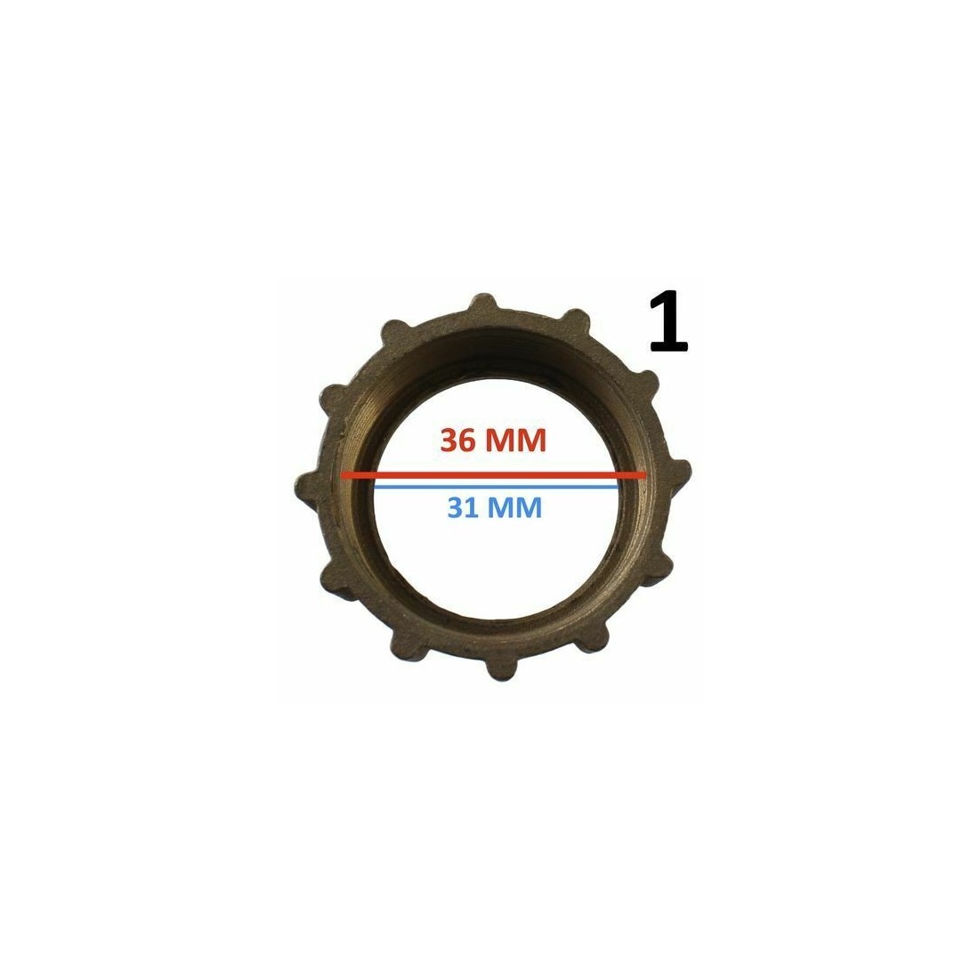 - Numero 1 , in ottone zincato con diametro imbocco filettatura 36 mm , foro inserimento curva 31 mm e altezza 15 mm