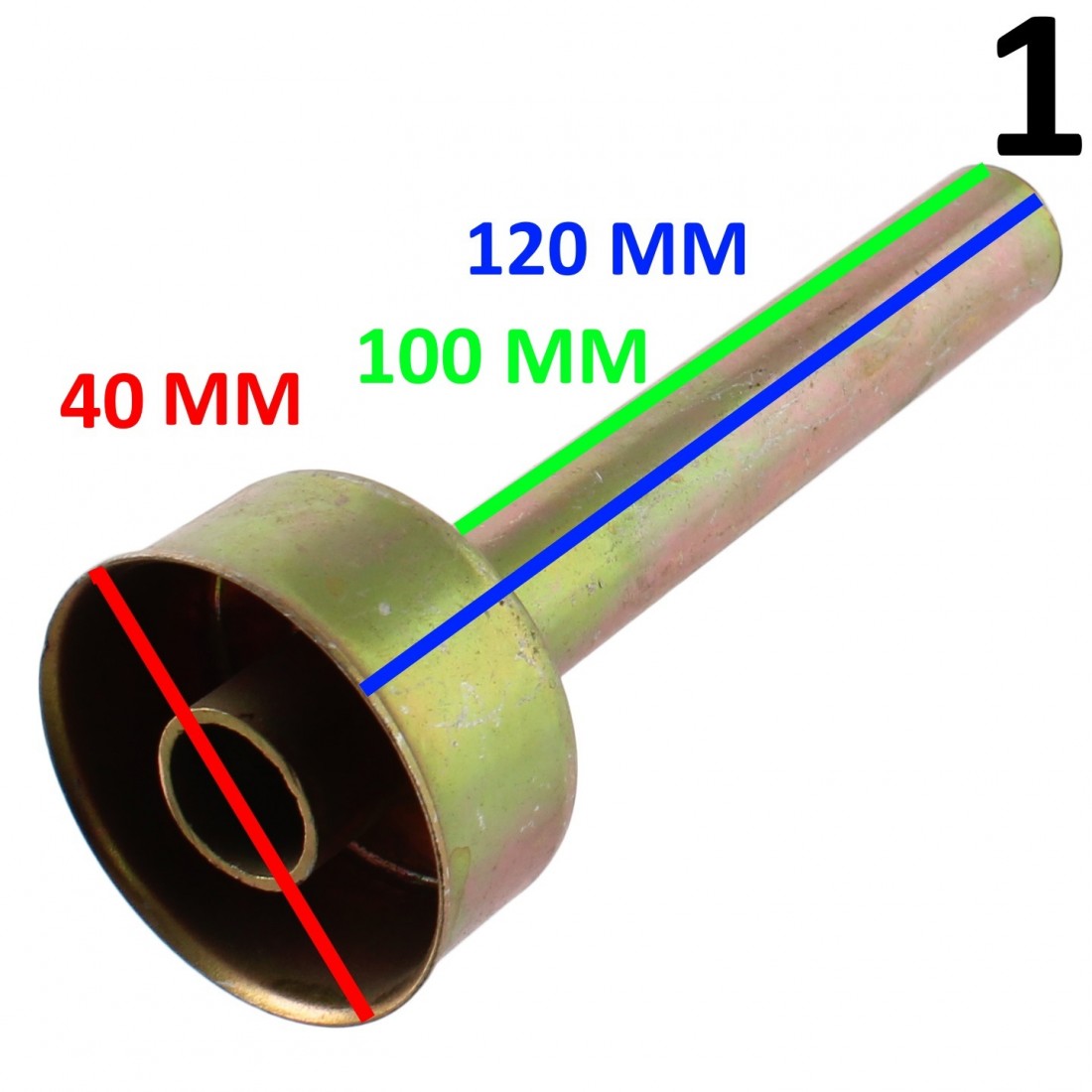 - Numero 1 , colore zincato , con diametro esterno 40 mm, lunghezza totale 120 mm, lunghezza stelo 100 mm