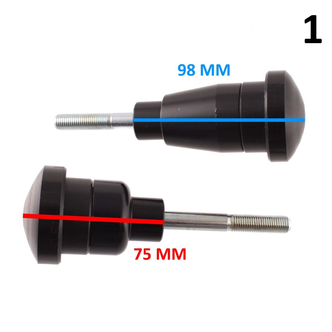 - Numero 1 , con lunghezza totale di 125 mm , lunghezza testa 75 mm e 98 mm , diametro vite di 10 mm