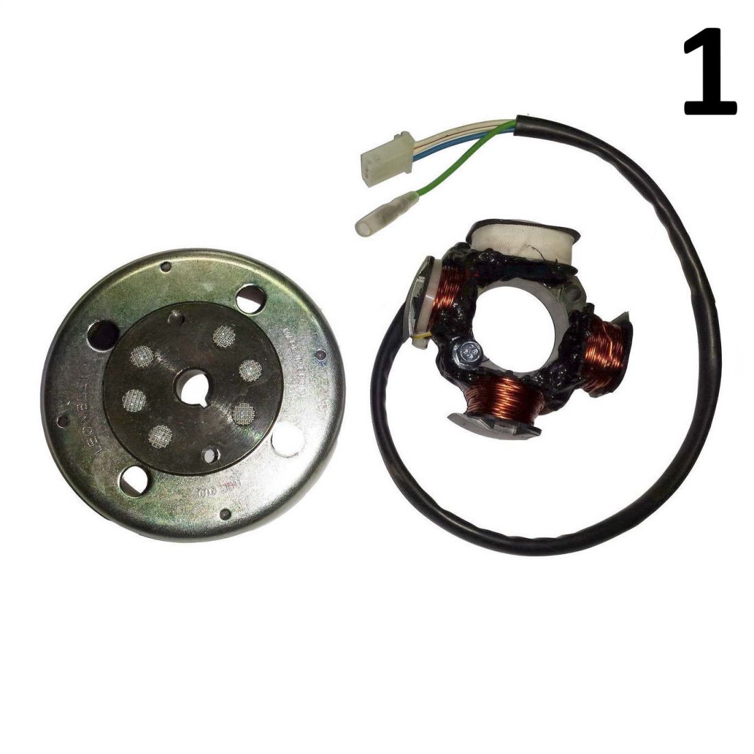 (R.19097) Vendo rotore generatore con statore a 4 poli per scooter vari con motore Franco Morini 50 cc tipo Benelli 491 - Naked - Cagiva Cucciolo - Progress - City - Derbi Vamos - Hunter- Paddock - Predator - Atlantis - Italjet Torpedo - Formula - Velocifero - Malaguti Crosser CR1 - Piaggio Diesis 100 - Atala Rizzato Byte - Hacker - Skeggia - Suzuki Address - Sepia , disponibili più varianti :