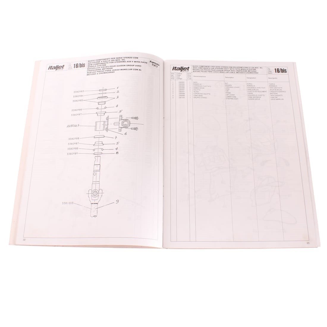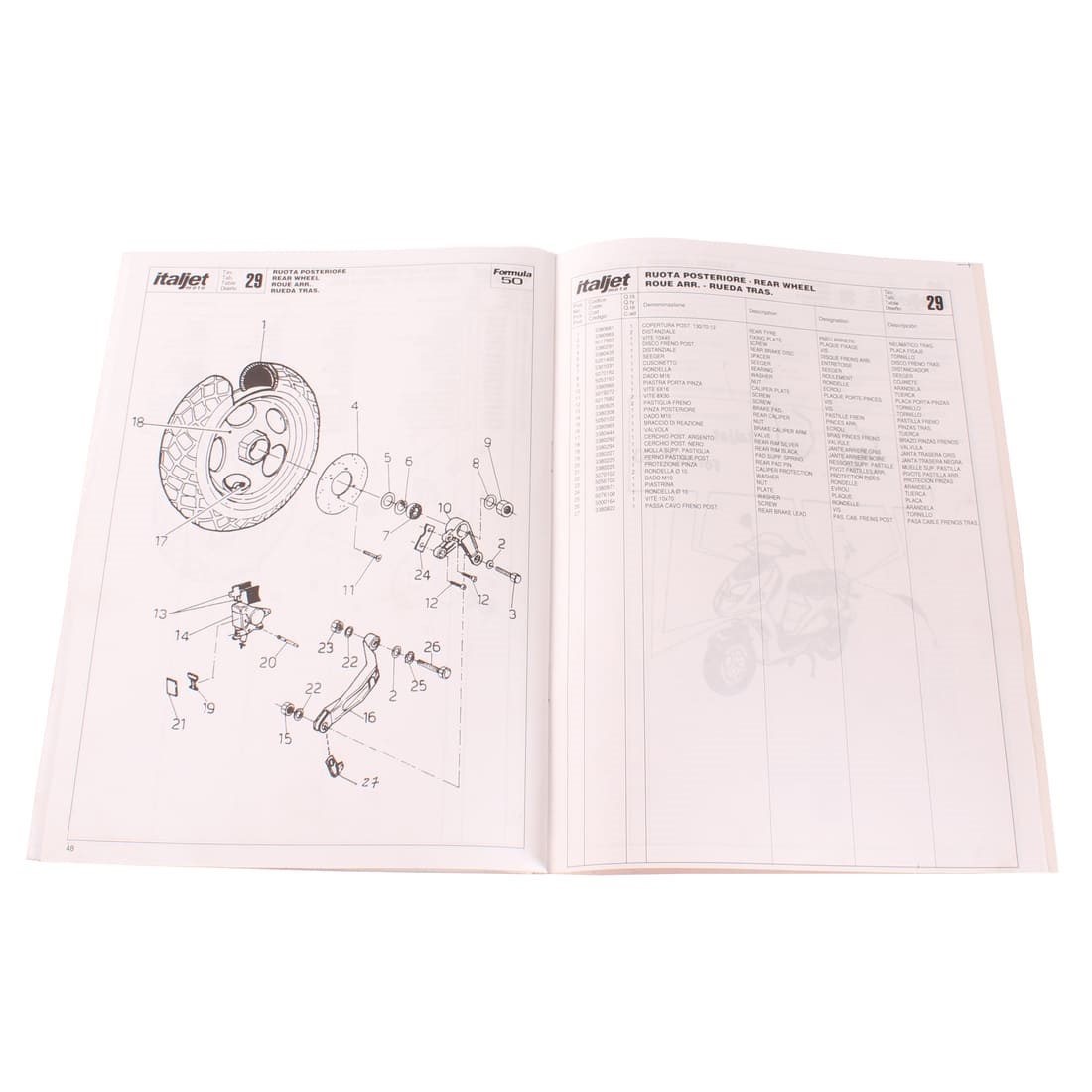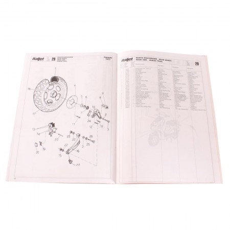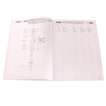 (R.19322) Vendo prontuario parti di ricambio con esplosi nuovo fondo di magazzino per Italjet Formula 50 cc in italiano - inglese - francese - spagnolo con leggeri segni di magazzinaggio, il prezzo si intende per singolo pezzo , disponibili più modelli :
