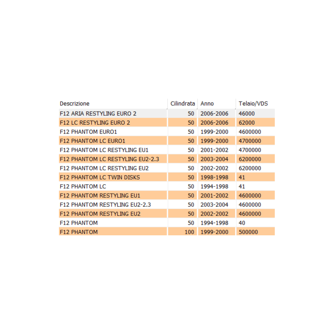 - Numero 1 : freccia completa Malaguti con codice 01903400 , euro 20