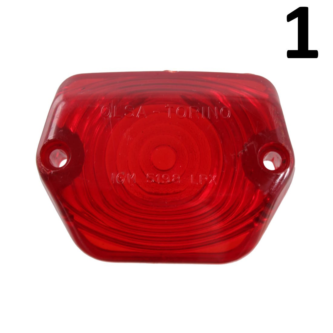 (R.20825) Vendo vetro lente fanalino posteriore usata di colore rosso per trattori d'epoca tipo fiat , più modelli disponibili :- Numero 1 : marchiato Olsa Torino IGM 5198 LPX- Numero 2 : marchiato Olsa Torino DGM 6121 IL1 e IGM 5198 LPX