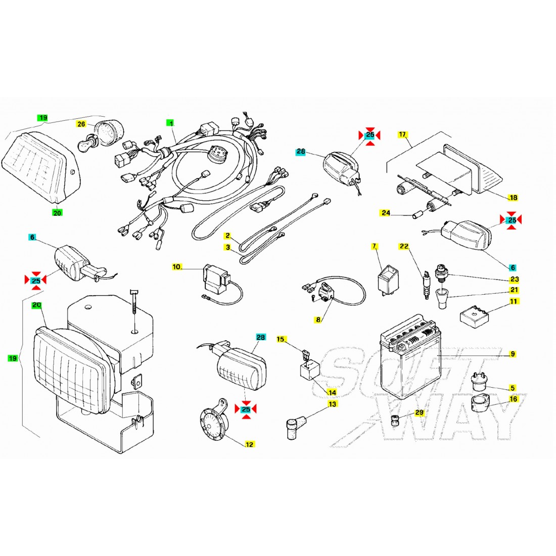 - Numero 1 : marchiato Cev 326 327 con codice Aprilia AP8112626 , euro 15