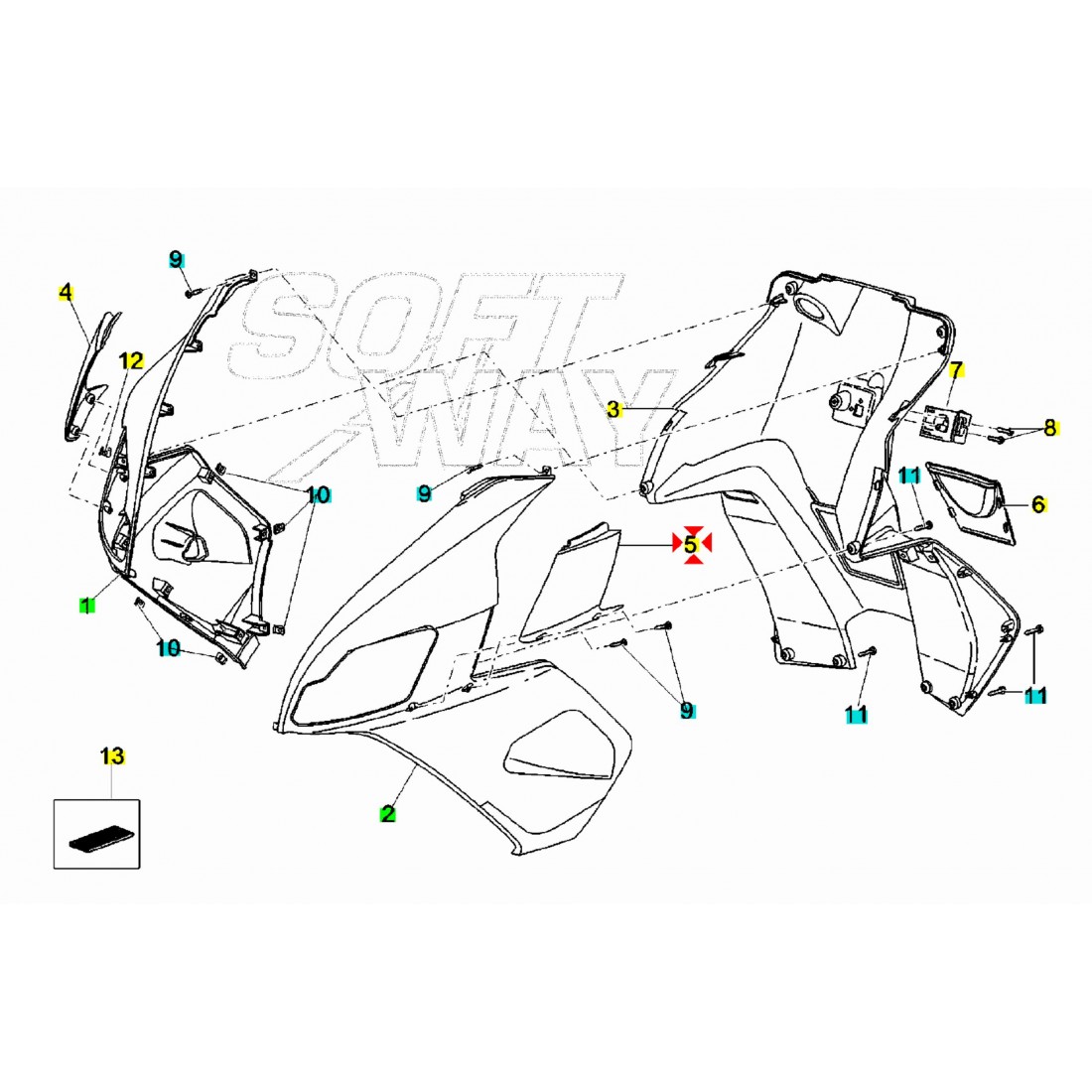 (R.21075) Vendo deflettore aria dello scudo anteriore di colore nero per Aprilia SR R Factory , per applicazioni e spaccato vedere foto , disponibili più combinazioni :