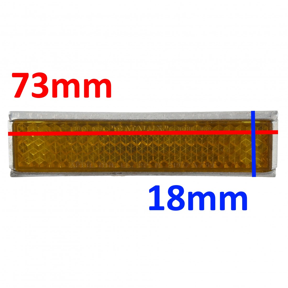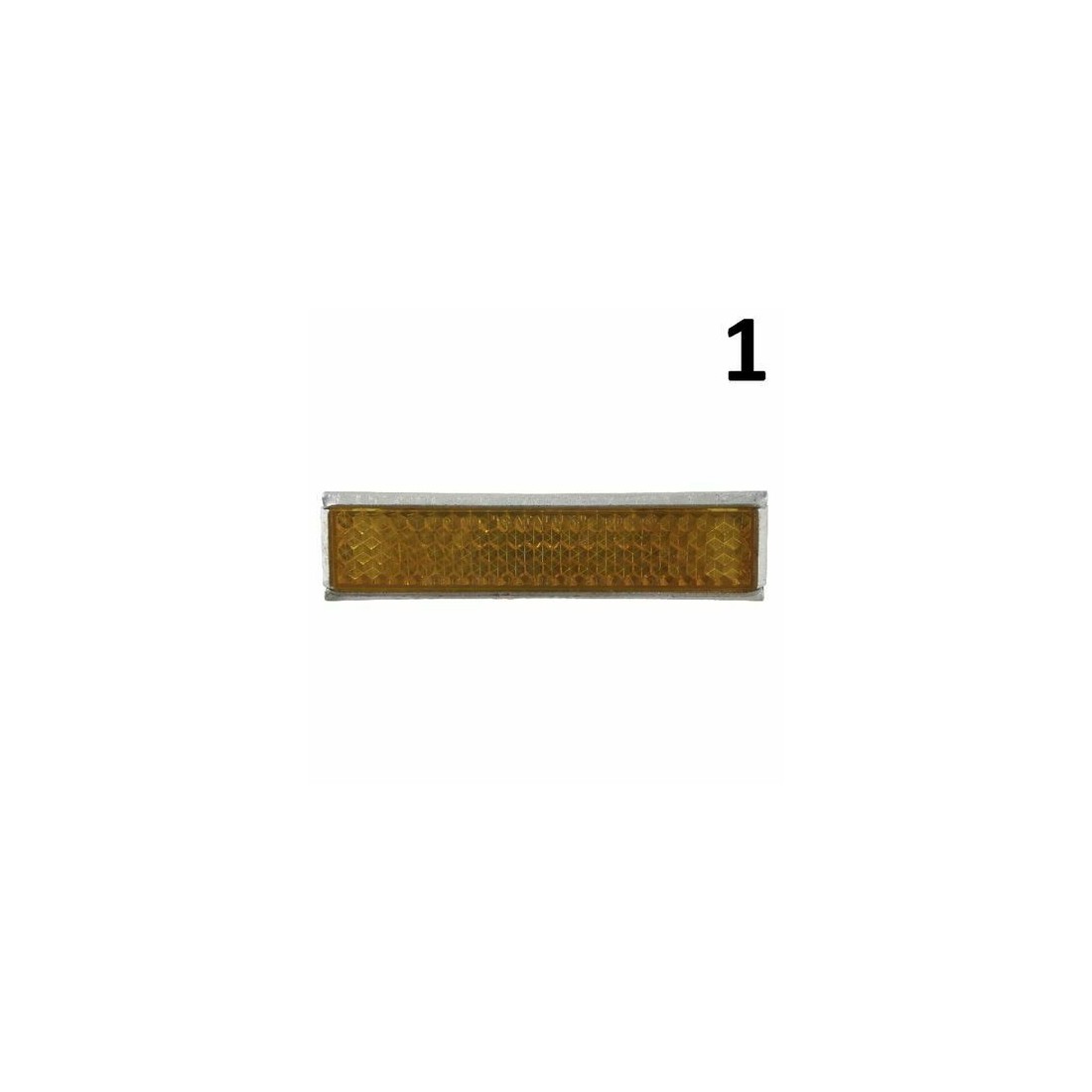 (R.11159) Vendo rinfrangenti nuovi d'epoca a quattro righe colore giallo per pedali bicicletta completi di carcassa fissaggio lunghezza 73 mm , larghezza 18 mm , il prezzo si intende per singolo pezzo , per misure vedere foto , disponibili più modelli :- Numero 1 , dritto marchiato Catalux APPR. MIN LL. PP. N. 2197/A/59 con carcassa fissaggio due viti , interasse 41 mm , euro 10- Numero 2 , dritto marchiato Catalux APPR. MIN LL. PP. N. 2197/A/59 con carcassa fissaggio una vite , euro 10 , solo 4 disponibili- Numero 3 , dritto marchiato Catalux APPR. MIN LL. PP. N. 2197/A/59 con carcassa fissaggio due viti , interasse 60,5 mm , euro 10 , solo 2 disponibili- Numero 4 , curvo marchiato Catasas , crepato come da foto , APPR. MIN LL. PP. N. 13721/''' TIPO B , con carcassa fissaggio una vite , euro 5 , solo 1 disponibile