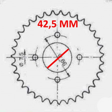 (R.21611) Vendo corona trasmissione nuova chiaravalli 505 per ciclomotori epoca con diametro interno dei fori di fissaggio da 7,5 mm , interasse fori di fissaggio da 66 mm e diametro foro 42,5 mm , per scansione e misure vedere foto , immagine solo a scopo dimostrativo , più modelli disponibili da 22 a 47 denti