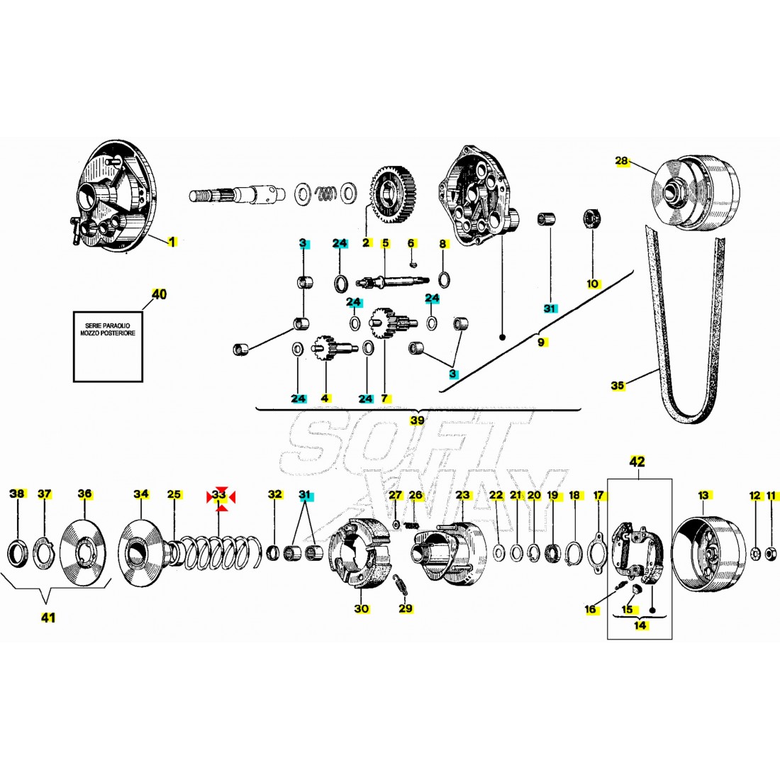 - Numero 2 : molla di colore giallo , diametro filo 3,9 mm con codice Malossi 297009YO