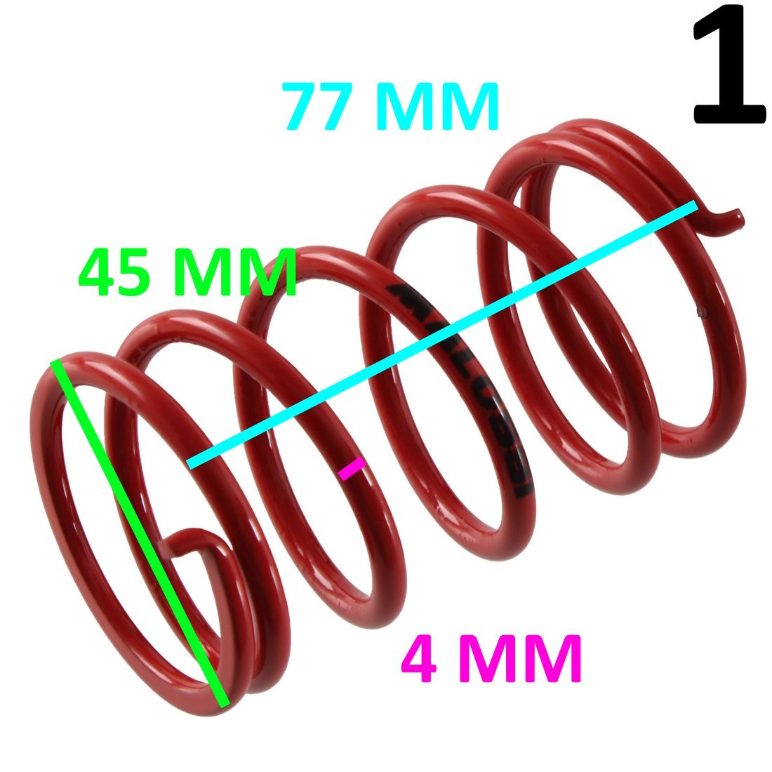 - Numero 1 : molla di colore rosso , diametro filo 4 mm , con codice Malossi 296955RO