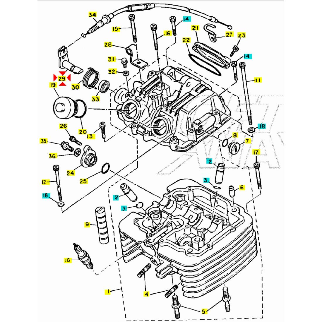 (R.21657) Vendo sollevatore valvole usato della testa cilindro per Yamaha XT 550 e 600 cc - XT K 600 cc - SRX 600 cc - XT Z Tenere 600 cc - TT K 600 cc - TT R 600 cc - TT W 600 cc - TT R 600 cc con codice Yamaha 1JK122880000 , per applicazioni e spaccato vedere foto , più modelli disponibili :