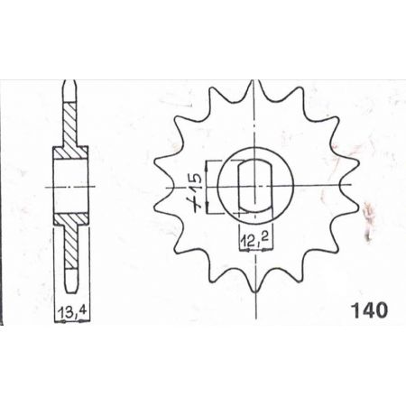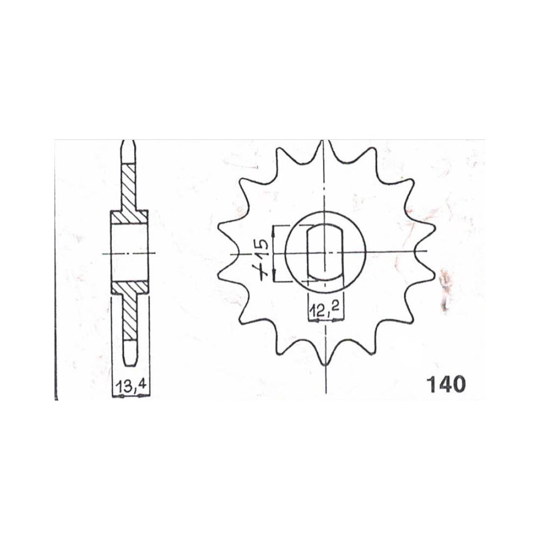 - Numero 1 : pignone a 12 denti con codice Malaguti 61401400 , con misure foro innesto da 15 mm x 12,2 mm e spessore 13,4 mm