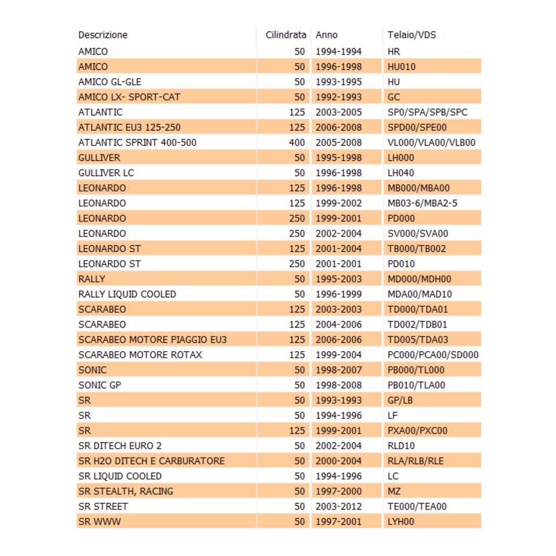 - Numero 2 : di colore rosso Piaggio Ape TM P703 P703V - Cosa CL CLX - Cosa 2 - Hexagon - Hexagon GT GTX - Hexagon LX LXT LX4 - Liberty - Liberty PTT - Liberty Moc - NRG MC3 - NRG Purejet - Skipper - Skipper LX - Puch - Typhoon - Vespa FL - Vespa FL2 - Vespa GTS - Vespa S - Zip - Zip SP con codice Piaggio 253366