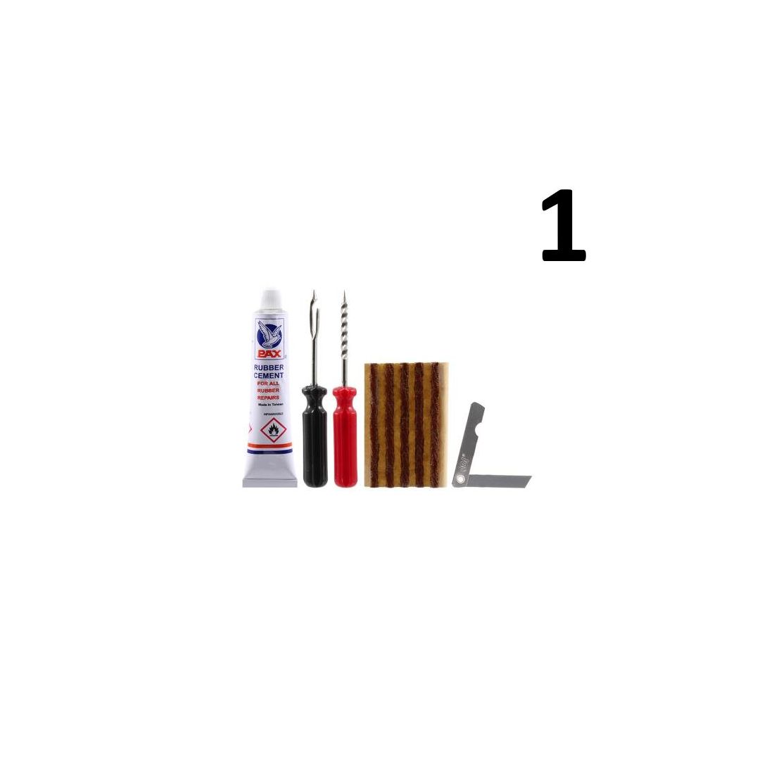(R.22717) Vendo kit per la riparazione di pneumatici tubeless nuovo comprendente un tubetto di mastice , due punteruoli , un taglierino e cinque pezzi di gomma per la riparazione , disponibili più combinazioni :