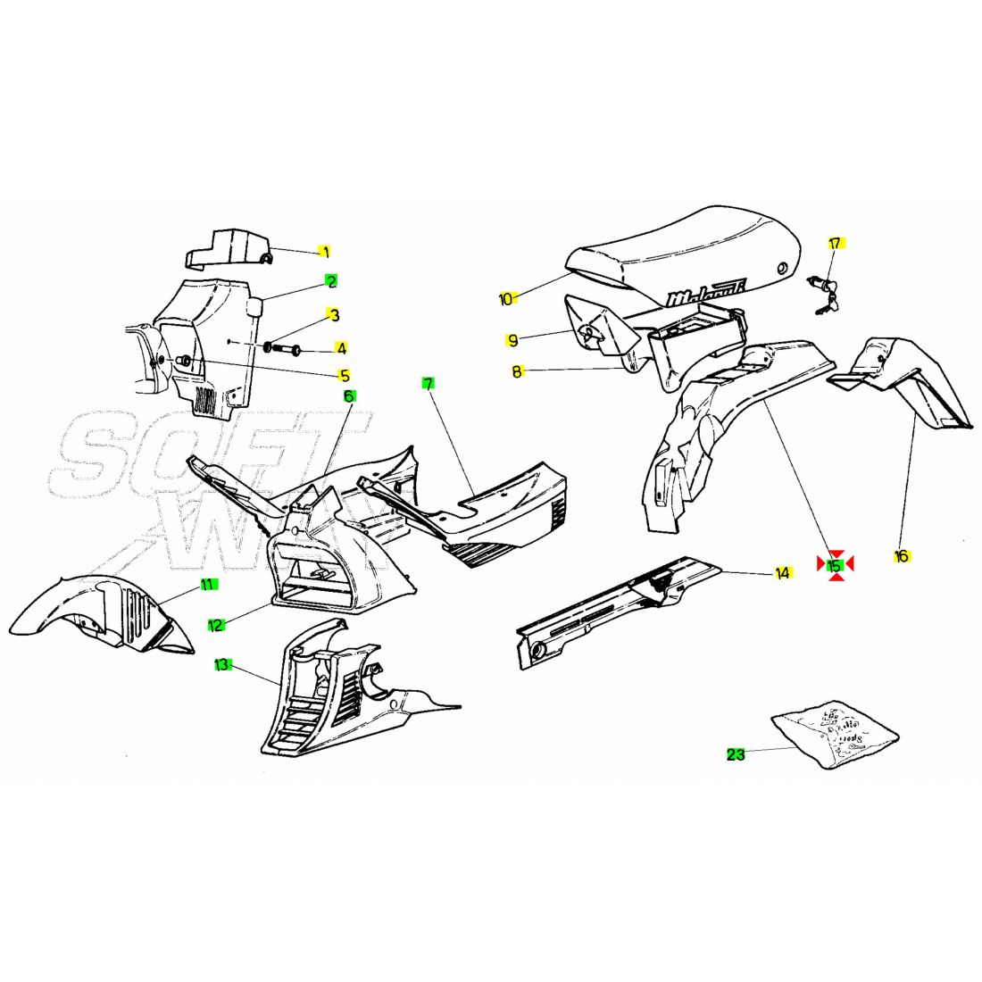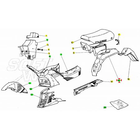 (R.23264) Vendo parafango posteriore nuovo con leggeri segni di magazzinaggio per Malaguti Fifty HF e RV dal 1988 originale Malaguti , per applicazioni e spaccato vedere foto , il prezzo si intende per il singolo pezzo , più modelli disponibili :