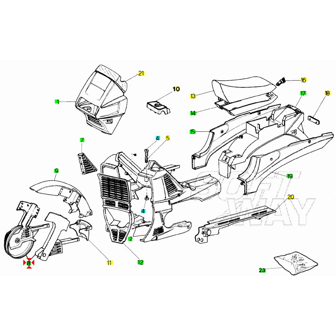 (R.23336) Vendo copricanna sinistro nuovo per Malaguti Fifty Top dal 1990 originale Malaguti con codice 06306072 , per applicazioni e spaccato vedere foto , più modelli disponibili :