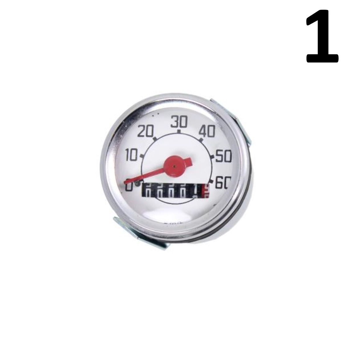 (R.24022) Vendo contachilometri nuovo per foro diametro 50 mm. per ciclomotori vari con sfondo bianco , numeri neri e lancetta rossa , il prezzo si intende per il singolo pezzo , più modelli disponibili :
