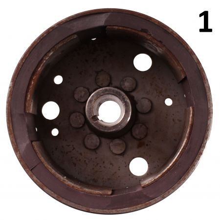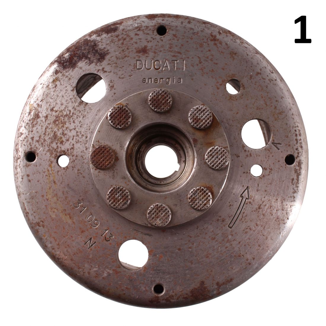(R.24141) Vendo volano usato marchiato Ducati Energia 310913 con rotazione sinistra per Fifty HF con frecce dal 87 - Full CX e Top 86/87 - Malaguti MGX dal 86 , con motore Franco Morini GS e T4 a 4 poli e 55 Watt , con il prezzo si intende il singolo pezzo , disponibili più modelli :