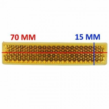 (R.8466) Vendo rinfrangenti catadiottro nuovo per pedali bici tipo WA Stella vintage o volendo anche Ciao tipo AM ( non sono OMP o Zibelplast ) di colore giallo con lunghezza 70 mm e larghezza 15 mm , il prezzo si intende per singolo pezzo , per misure vedere foto , disponibili più modelli :