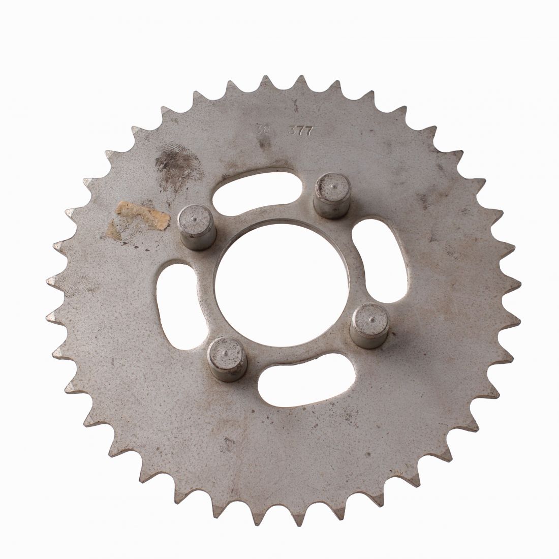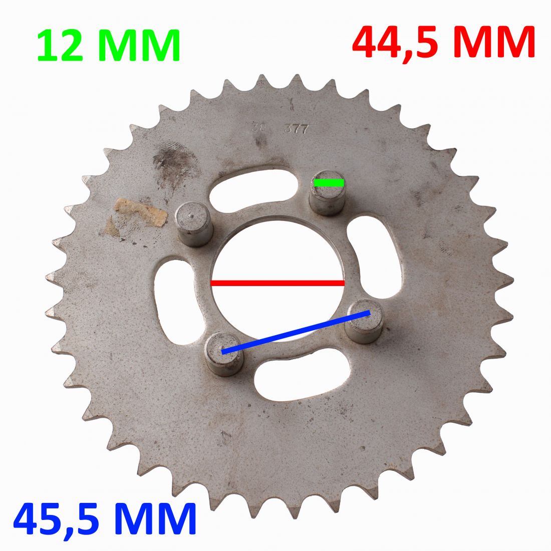 (R. 25178) Vendo corona nuova con codice Chiaravalli 377 a 4 colonnette da 12 mm. per Fantic Motor Caballero 50 cc - Super Roket 50 cc e Guzzi Dingo CR Super 49 cc - Dingo Monomarcia 49 cc -  Dingo 3 Vel - GT 4 Vel con diametro 12 mm interasse colonnette 45,5 mm ed interasse foro centrale 44,5 mm , per misure vedere foto , disponibili con dentatura 38 - 46