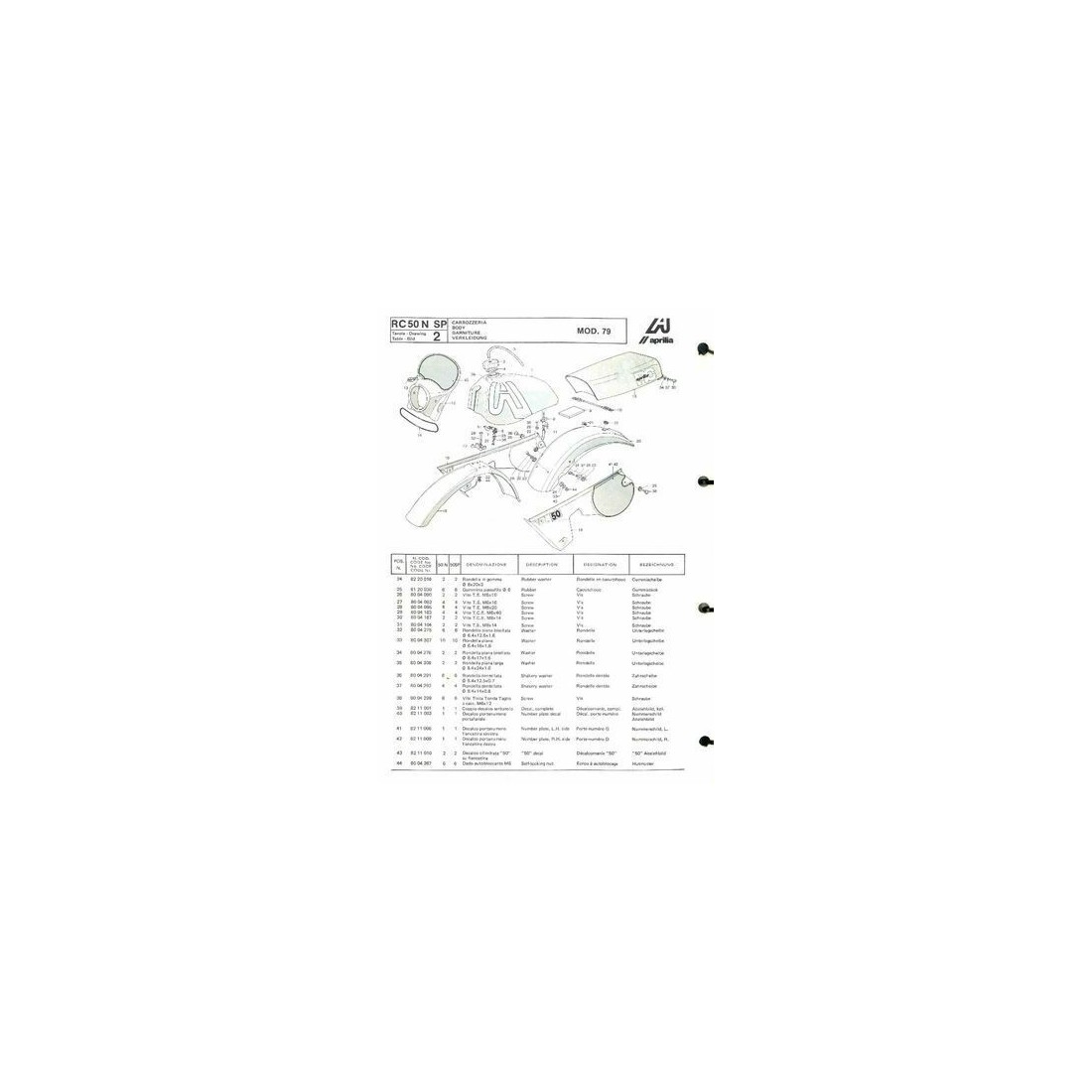 (R.10019) Vendo prontuario originale usato e incompleto con esploso parti di ricambio per Aprilia RC 50 N e SP disponibile in formato cartaceo e in formato digitale pdf , il prezzo si intende per il singolo pezzo