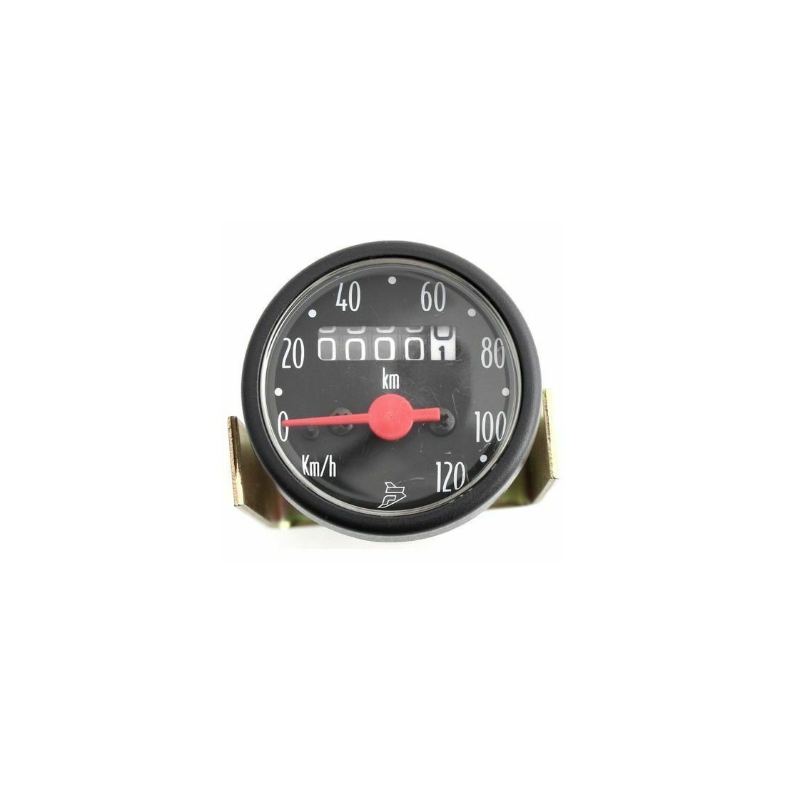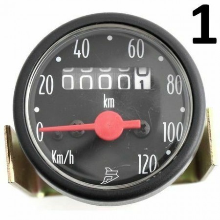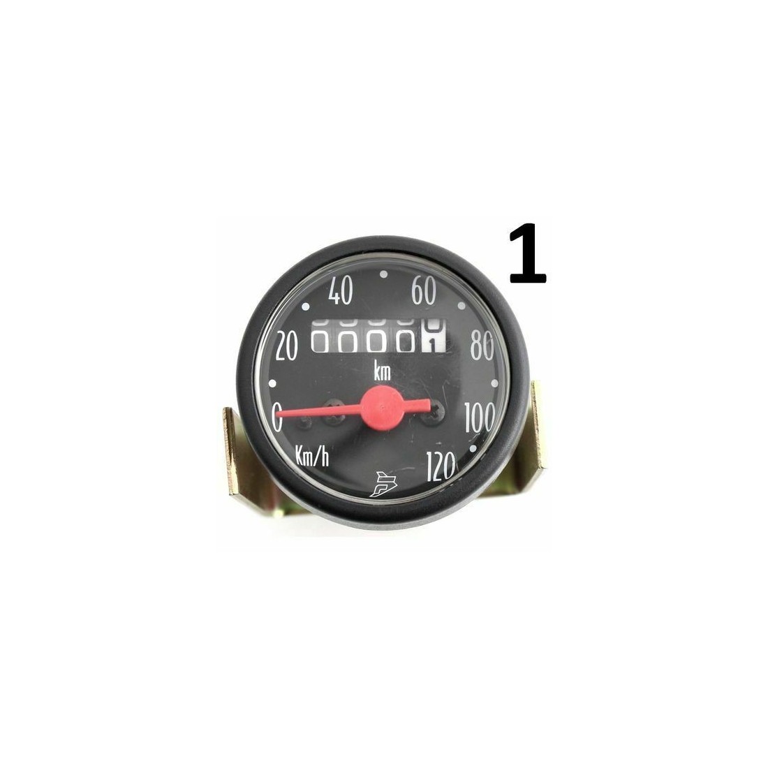 (R.9341) Vendo testa del contachilometri marca Facomsa con diametro da 50 mm e scala fino a 120 con imposta fina da 2mm per ciclomotori vari con sfondo nero e scritte bianche , il prezzo si intende per singolo pezzo , disponibili più modelli , tutti con imposta fina diametro da 2,2 mm