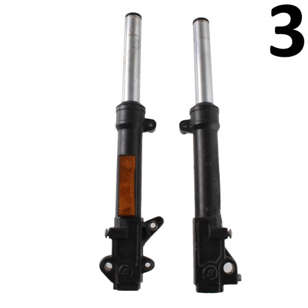 (R.8571) Vendo coppia foderi con steli forcella usati per scooter Aprilia SR WWW - Ditech - Street - Stealth, Racing 50 cc dal 1997 per telai MZ - LYH00 - RLA - RLB - RLE - RLD10 - TE000 - TEA00 sinistro e destro con codice stelo sinistro AP8203788 o 8203788 e codice stelo destro AP8203787 o 8203787 , il prezzo si intende alla singola coppia , per applicazioni vedere foto , disponibili più modelli :