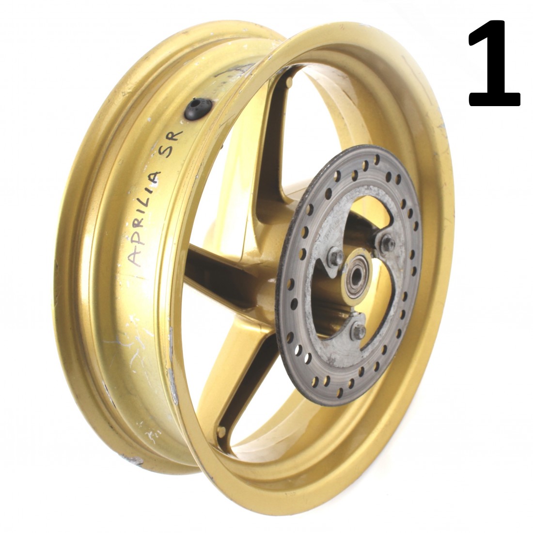 (R.8548) Vendo cerchione ruota anteriore usato in lega con 5 razze e marca Grimeca marchiato E - 13 x 3.50 DOT-D per Aprilia SR WWW - Factory - Street , il prezzo si intende per singolo pezzo , disponibili più modelli :