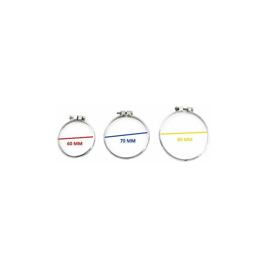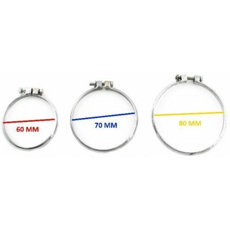 (R.8493) Vendo collarino stringi terminale marmitta in ferro cromato nuovo per terminale marmitta moto vintage tipo Moto Morini o Gilera e varie , il prezzo si intende per singolo pezzo , per misure vedere foto, disponibili più modelli :