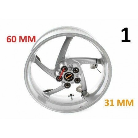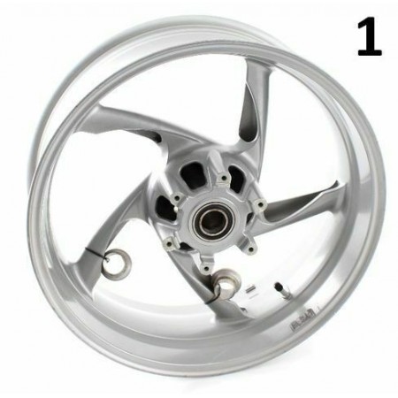 (R.7709) Vendo cerchione posteriore ruota usato da 17 pollici per Benelli Tre K 1130 cc dal 2007 - Tornado 1130 cc dal 2007 - Tnt 1130 cc dal 2006 con codice Benelli R30037200200E e marchiato 17 x MT 600 DOT E - 217.1.342.1A - 21713421A completo di distanziali ruota posteriore , il prezzo si intende per singolo pezzo , per applicazioni e misure vedere foto , disponibili più modelli :