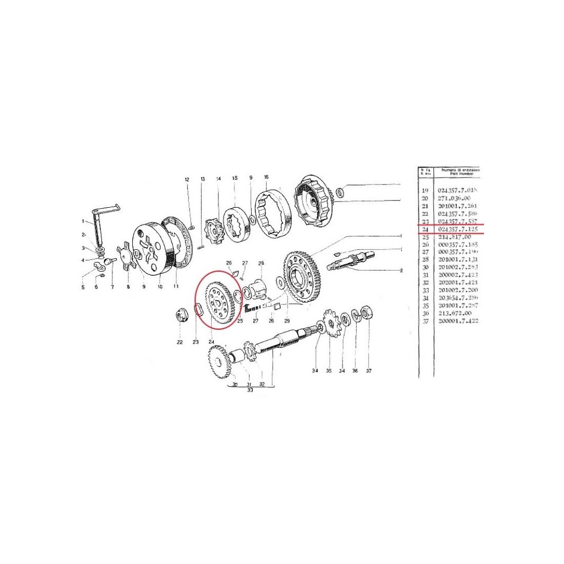 (R.7644) Vendo ruota dentata condotta frizione con ingranaggio da 67 denti elicoidale nuova per Garelli Gulp Flex - Matic - Matic Lusso - Bimatic - Concorde Matic con codice Garelli 0243577125 o 024.357.7.125 , il prezzo si intende per singolo pezzo , per misure e esploso vedere foto , disponibili più modelli :