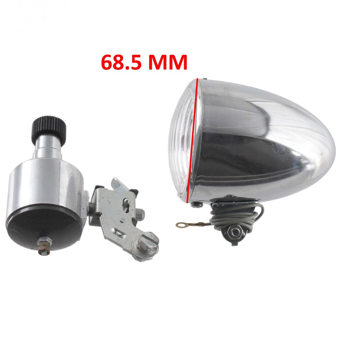 (R.7464) Vendo gruppo completo di fanale in ferro e dinamo nuovo per biciclette vintage , il prezzo si intende per singolo kit , per misure vedere foto , disponibili più modelli :