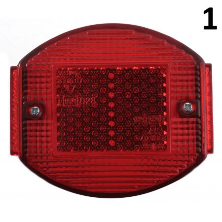(R.7177) Vendo fanalino posteriore tipo Cev 9350 per moto varie epoca tipo Moto Guzzi - Ducati - Moto Morini - Benelli - Gilera marchiato Sim 232.07 R7 I e21 028 con interasse fori fissaggio 50,5 mm , per misure vedere foto , disponibili più combinazioni :