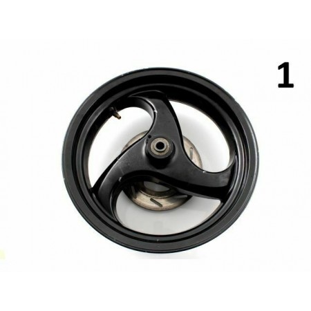 (R.6396) Vendo cerchione anteriore in lega usato per Piaggio NRG 50 cc prima serie dal 1994 e NRG MC2 50 cc dal 1996 e Gilera Typhoon e Storm per ruota da 13 pollici x 3.50 di colore nero con tre razze marca Grimeca con codice Piaggio 5640170090 - 464369 - 561647 , il prezzo si intende per singolo pezzo , per applicazioni vedere foto , disponibili più modelli :