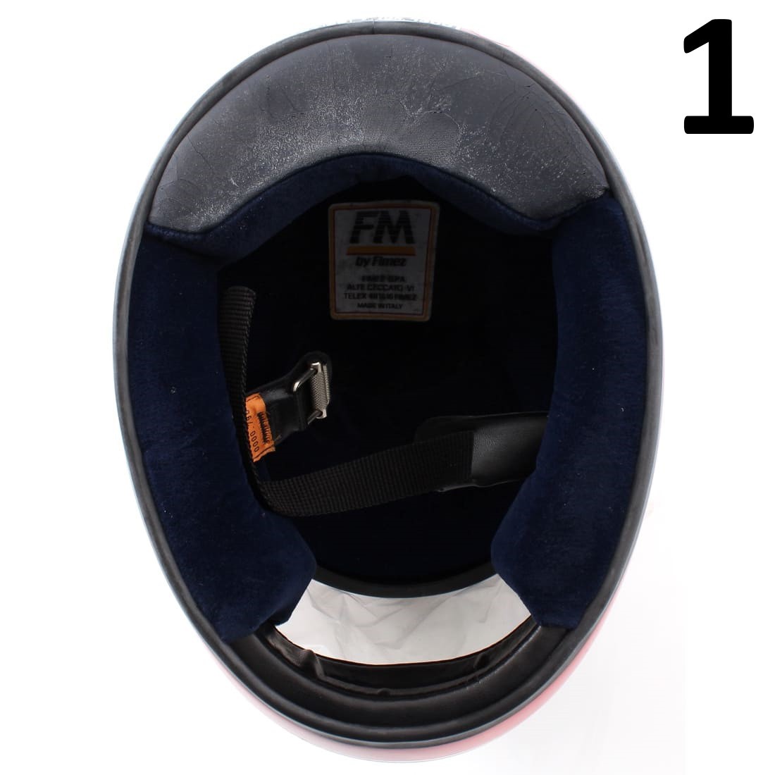 - Numero 1 , con adesivo Yamaha di colore rosso e bianco , spugna interna sgretolata , da rifoderare , disponibile taglia 58 M