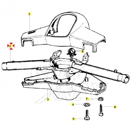 (R.1113) Vendo scatola corpo manubrio nuova per Piaggio Cosa1 CL e CLX 125 cc dal 1988 con telai VNR1 - VLR1 - VSR1 e codice Piaggio 266571 o ex 228522 , per misure applicazioni ed esploso vedere foto , il prezzo si intende per il singolo modello , più modelli disponibili :