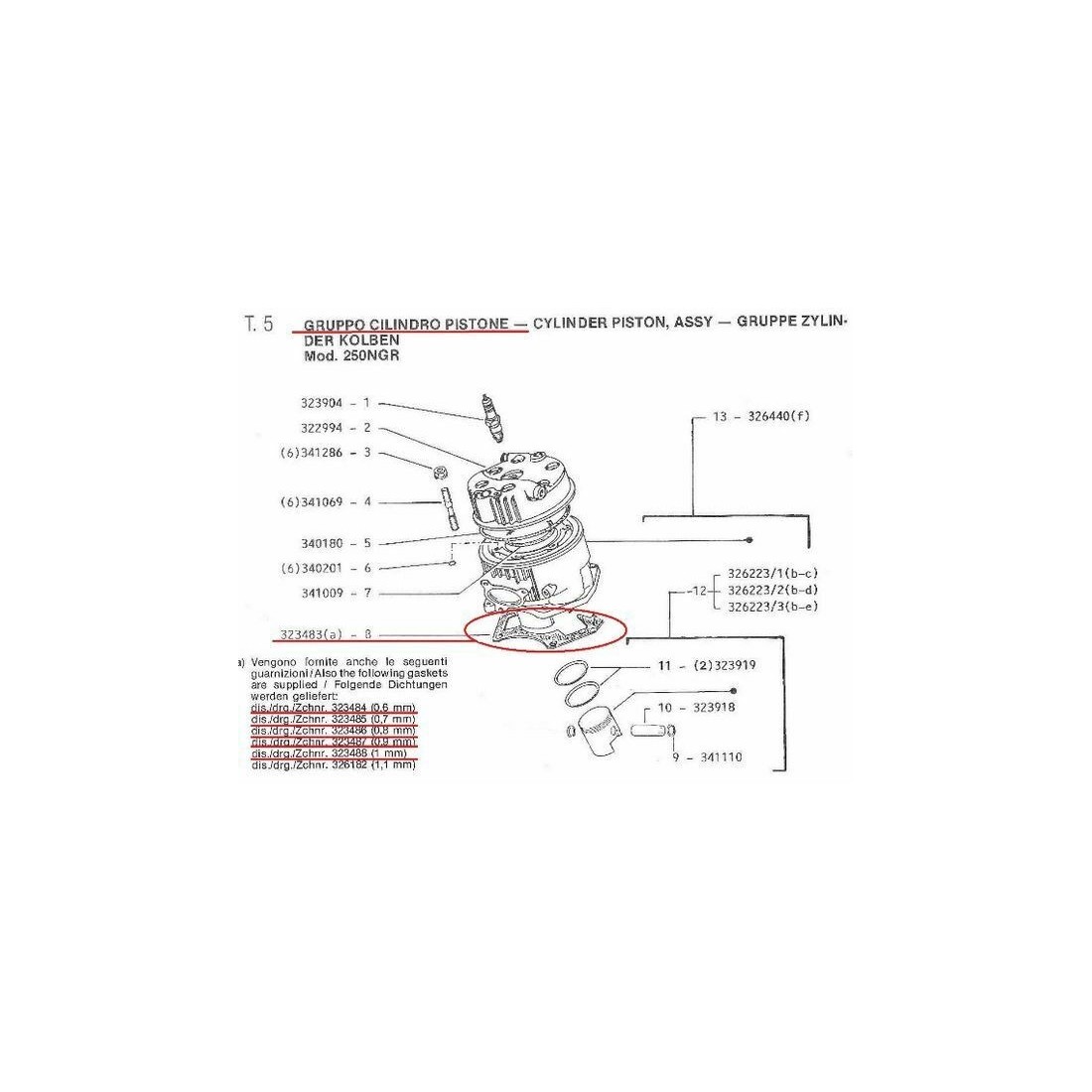 - Numero 1 , codice 323484 , guarnizione con spessore 0,6 mm