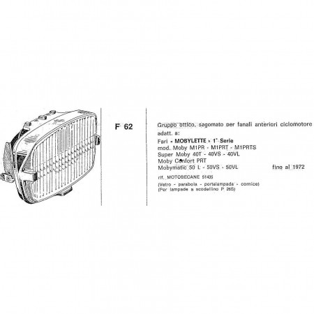 (R.330) Vendo gruppo ottico fanale anteriore per Motobecane Moby M1PR - M1PRT - M1PRTS - Super Moby 40T - 40VS - 40VL - Moby Comfort - Mobymatic 50L - 50VS - 50VL fino al 1972 con codice Motobecane 51435 , il prezzo si intende per singolo pezzo , per misure e applicazioni vedere foto , disponibili più modelli :