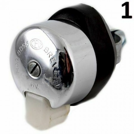 (R.1477) Vendo interruttore frecce CEV tondo modello 8055 a 6 Volt e 3 scatti con luce spia e coperchio in metallo cromato e fondo in plastica nera con fissaggio a fascetta di diametro 22 mm , il prezzo si intende per singolo pezzo , per misure vedere foto , disponibile più modelli :