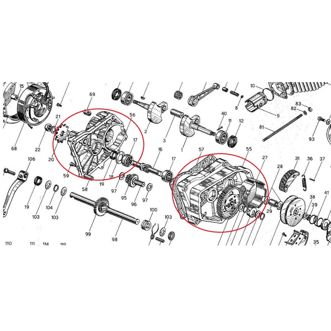 Carter motore Minarelli V1 V1A pedali...