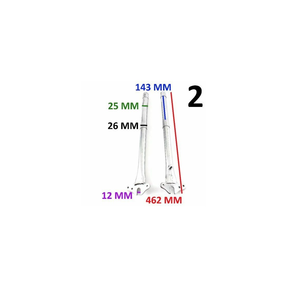 - Numero 2, coppia con diametro esterno 25 mm, lunghezza totale 462 mm e distanza tra spessori 140 mm , euro 50