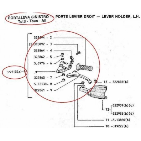 Comando portaleva con leva sinistro della frizione per Gilera RX e RV 322313