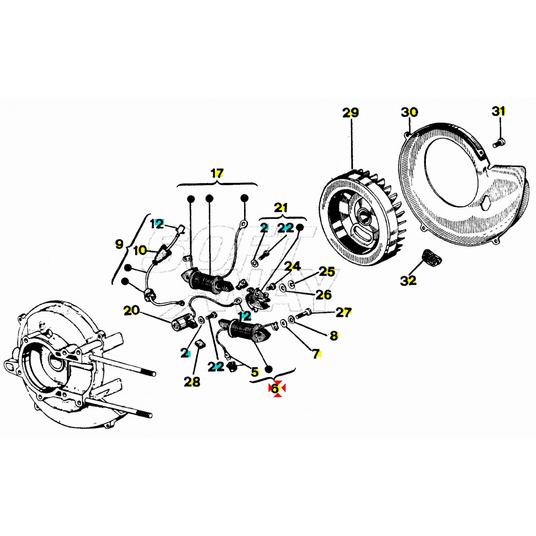 (R.3657) Vendo bobina illuminazione usata per Piaggio Ciao prima serie dal 1980 al 1988 per volano pesante con codice Piaggio 187404 o 1874045, con interasse fori 50 mm , per misure applicazioni ed esploso vedere foto