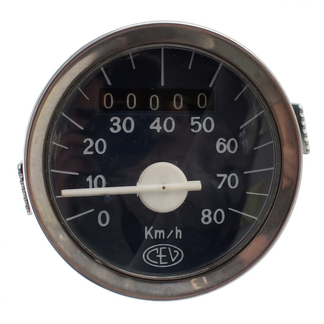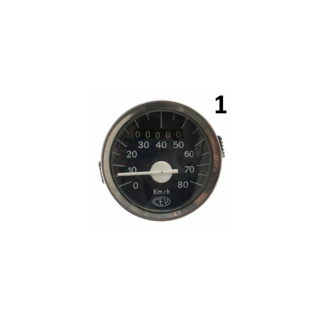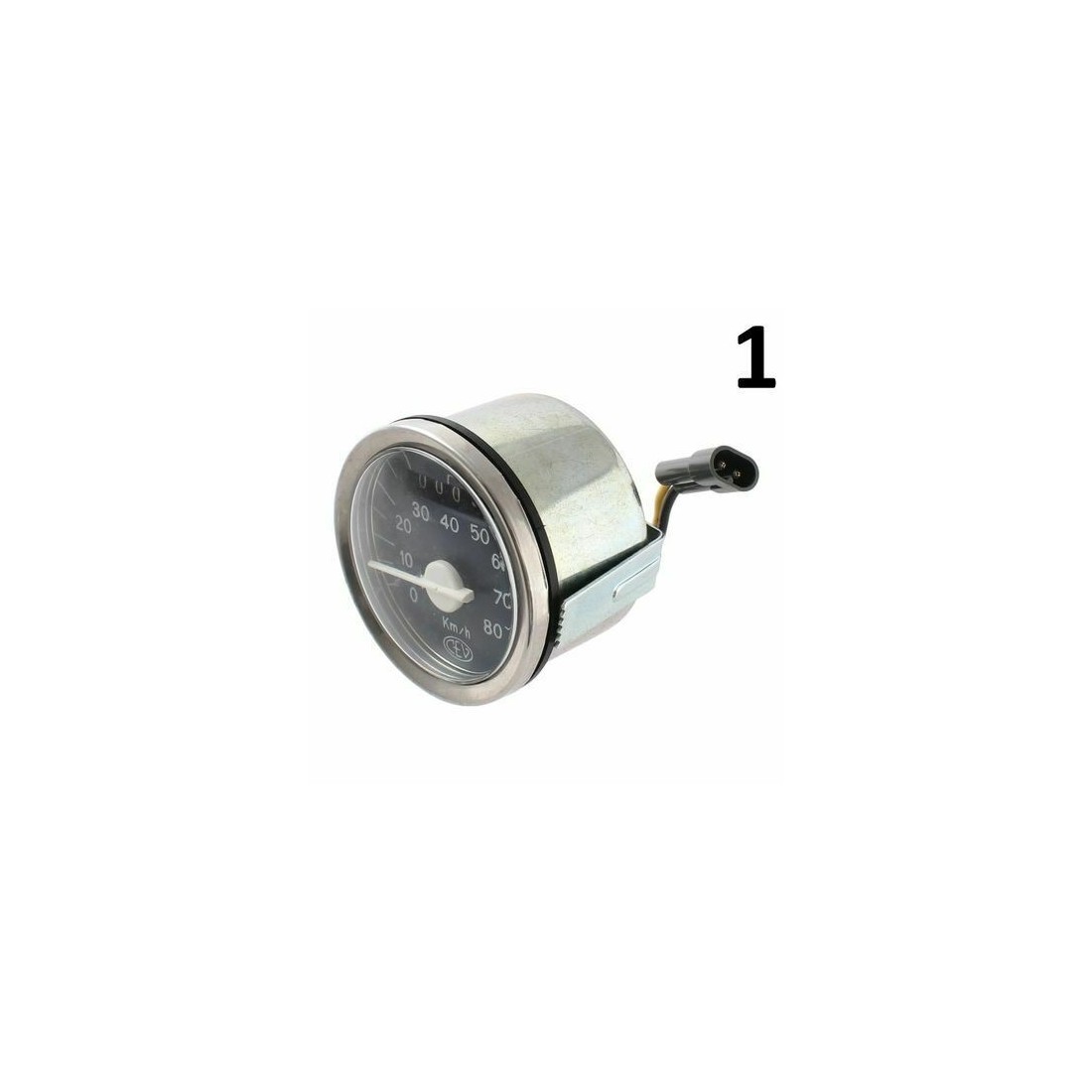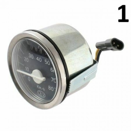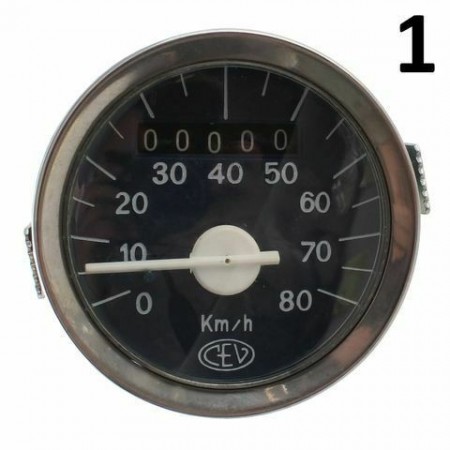 (R.12460) Vendo contakilometri tachimetro diametro da 60 nuovo per ciclomotori e motocicli vari epoca marca CEV con scala da 0 a 80 km/h , carcassa da 60mm di diametro e filo con imposta fina da 2mm , sfondo blu scuro con scritte e lancetta bianche , il prezzo si intende per singolo pezzo , per misure vedere foto , disponibili più modelli :