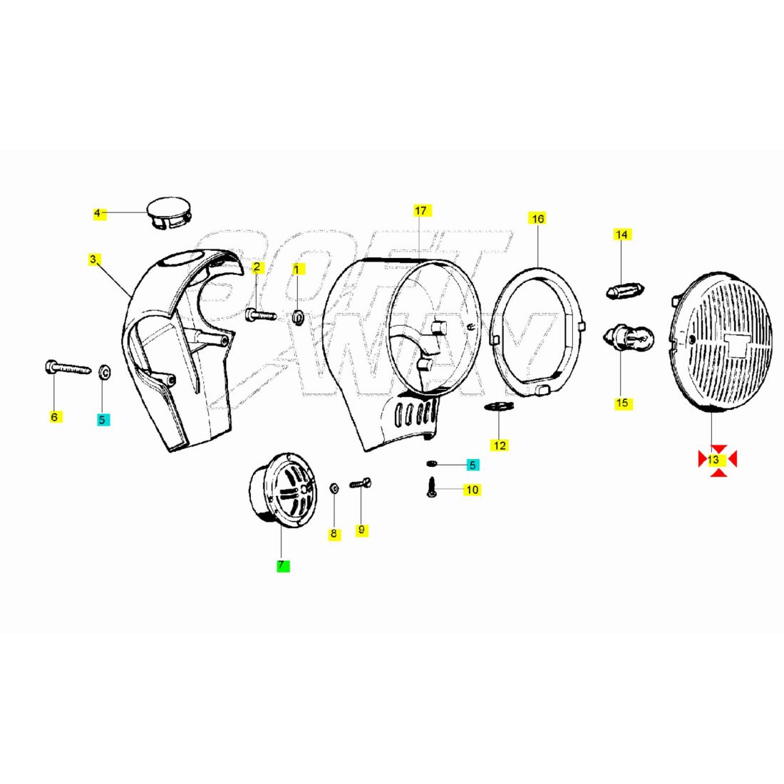 (R.13493) Vendo gruppo ottico del fanale anteriore nuovo per Piaggio Grillo dal 1989 simile a codice Piaggio 255432 , per applicazioni e spaccato vedere foto , più modelli disponibili :
