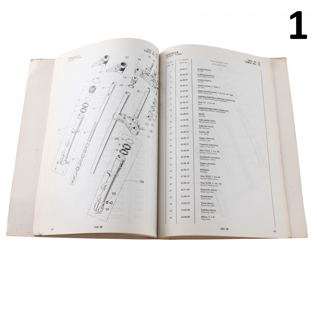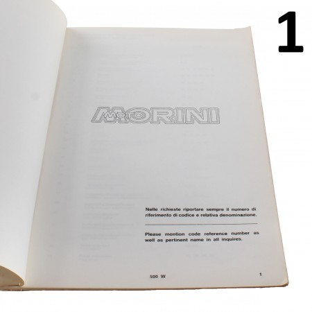 (R.13752) Vendo prontuario con esplosi parti di ricambio nuovo per Moto Morini 500 W 5 marce originale epoca non riproduzione in italiano e inglese , il prezzo si intende per singolo pezzo , disponibili più modelli :