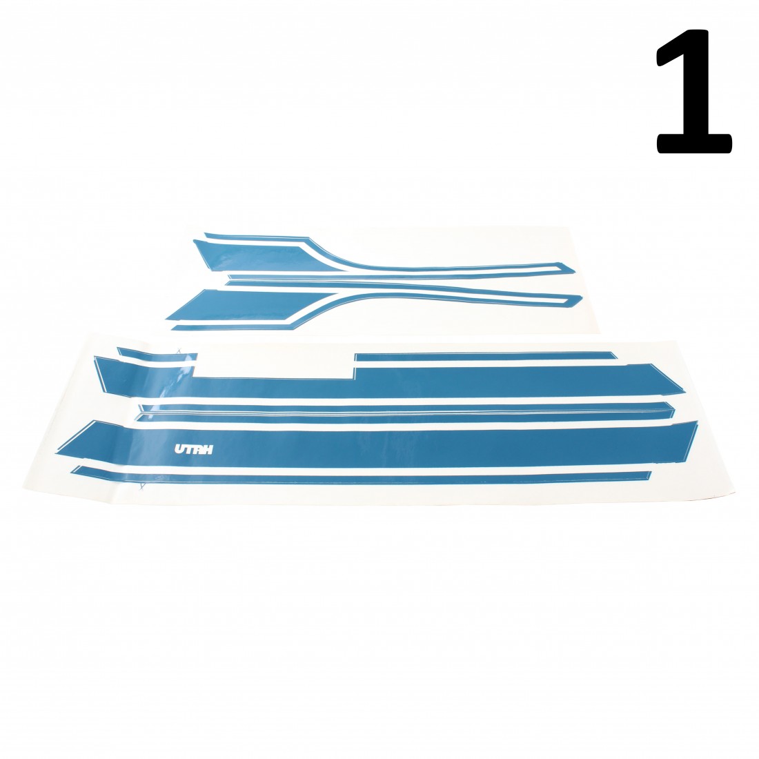 (R.13774) Vendo serie decalco anteriori e posteriori nuovi per i cofani laterali e il parafango anteriore per Piaggio Vespa PX 125 e 150 cc e PE 200 cc marca Utah con codice Uf106 o UF/106 , modello vintage dell'epoca , il prezzo si intende per singolo kit , disponibili più modelli :