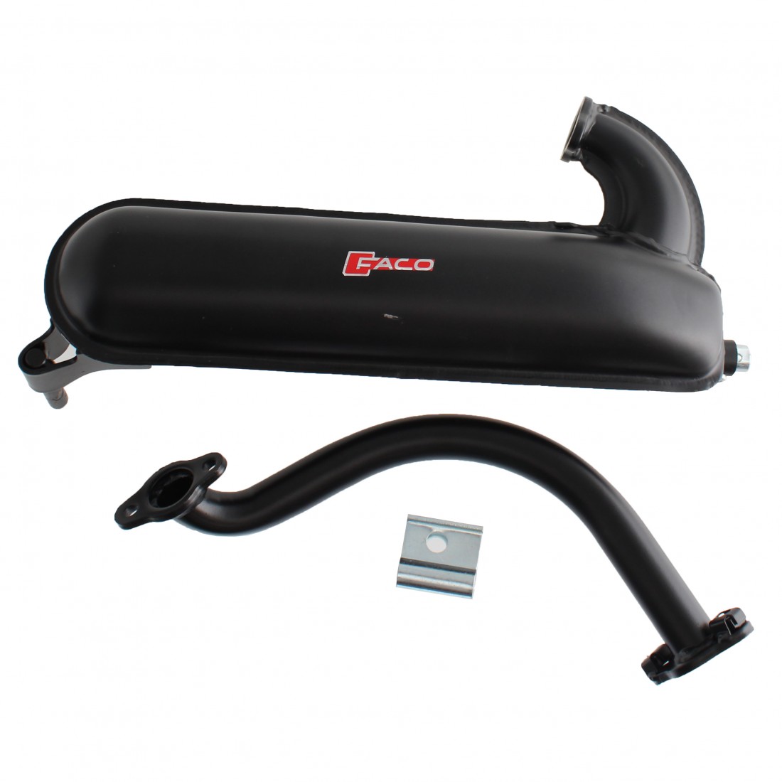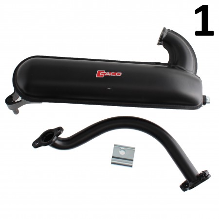 (R.14481) Vendo marmitta a siluro completo di curva e fascia nuovo per Piaggio Vespa solo 50 cc tutti i modelli con motore a corsa bassa tipo 50 Special - L - N - R - SS marca Faco con codice marmitta 0015 e codice collettore 0017 , il prezzo si intende per singolo kit , disponibili più modelli :