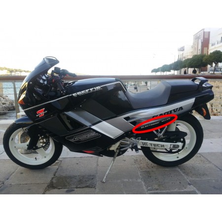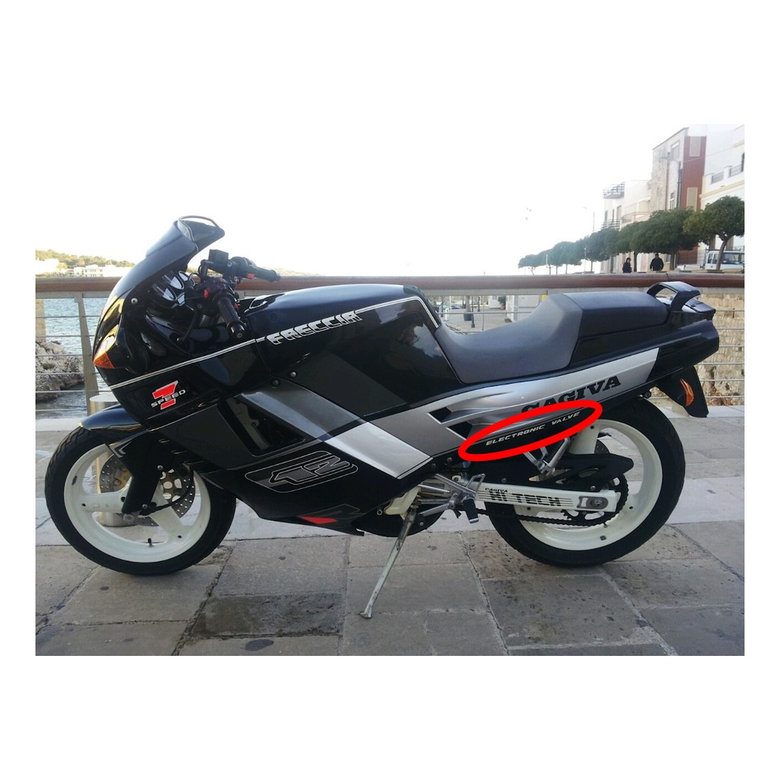 (R.14616) Vendo decalco scritta Electronic Valve fianchetto inferiore nuovo per Cagiva C12 R 125 cc con codice 800063911 - 63911 con lunghezza 265 mm e altezza 11 mm , il prezzo si intende per singolo pezzo , foto del veicolo solo a scopo dimostrativo , disponibili più modelli :