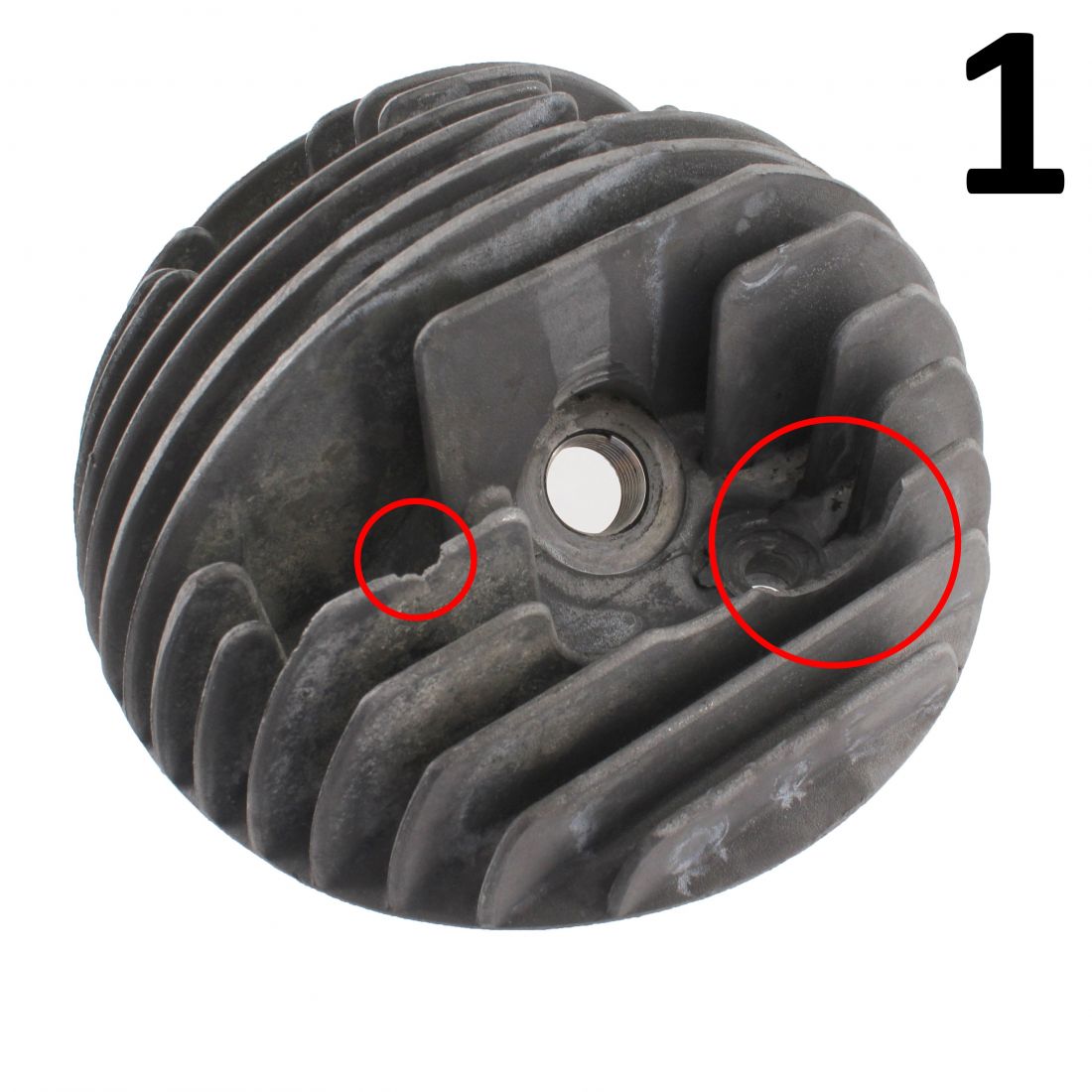 - Numero 1 : con diametro camera di scoppio 61 mm e interassi fori 55,5 mm e 53,75 mm con due alette danneggiate come da foto , euro 30