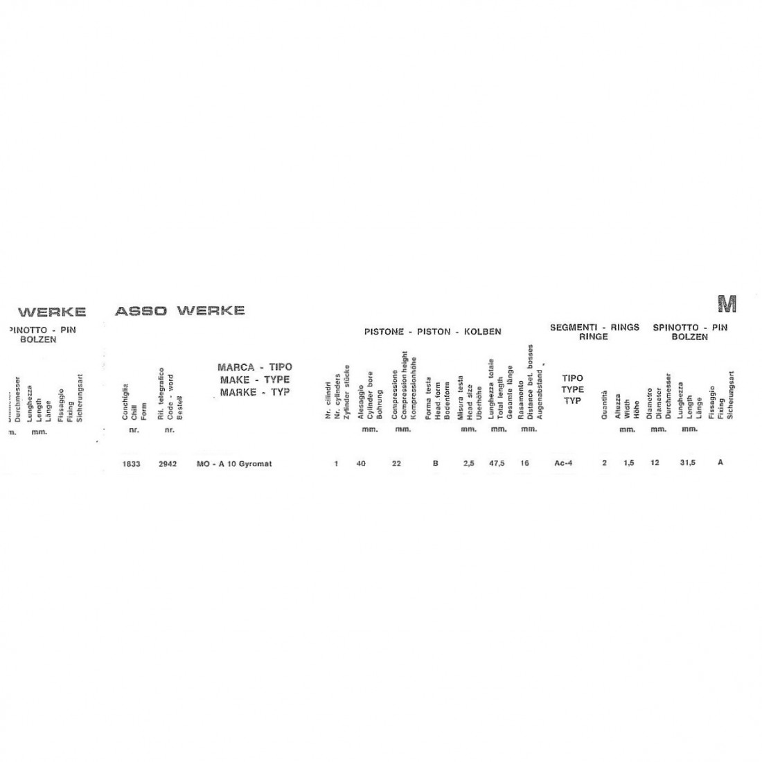 (R.14787) Vendo pistone completo nuovo per motori Franco Morini M0 - A 10 Gyromat con codice Asso 2942 , completo di coppia fasce elastiche e coppia seeger con spinotto da 12 x 33 mm , il prezzo si intende per singolo pezzo , per misure e informazioni tecniche vedere foto , disponibili più modelli :